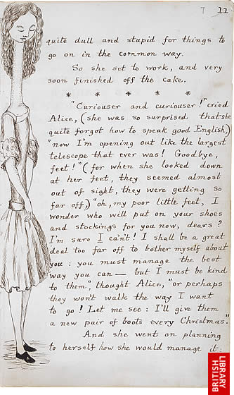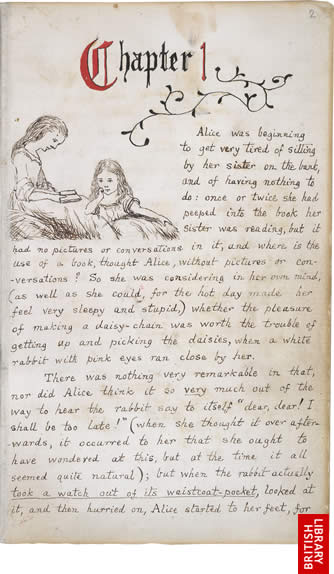 Lewis Carroll (Charles Lutwidge Dodgson 1832-1898) foi um escritor e um matemático britânico. Seu livro mais conhecido é Alice no país das maravilhas (1865), que tem o facsimile do original publicado pela British Library.