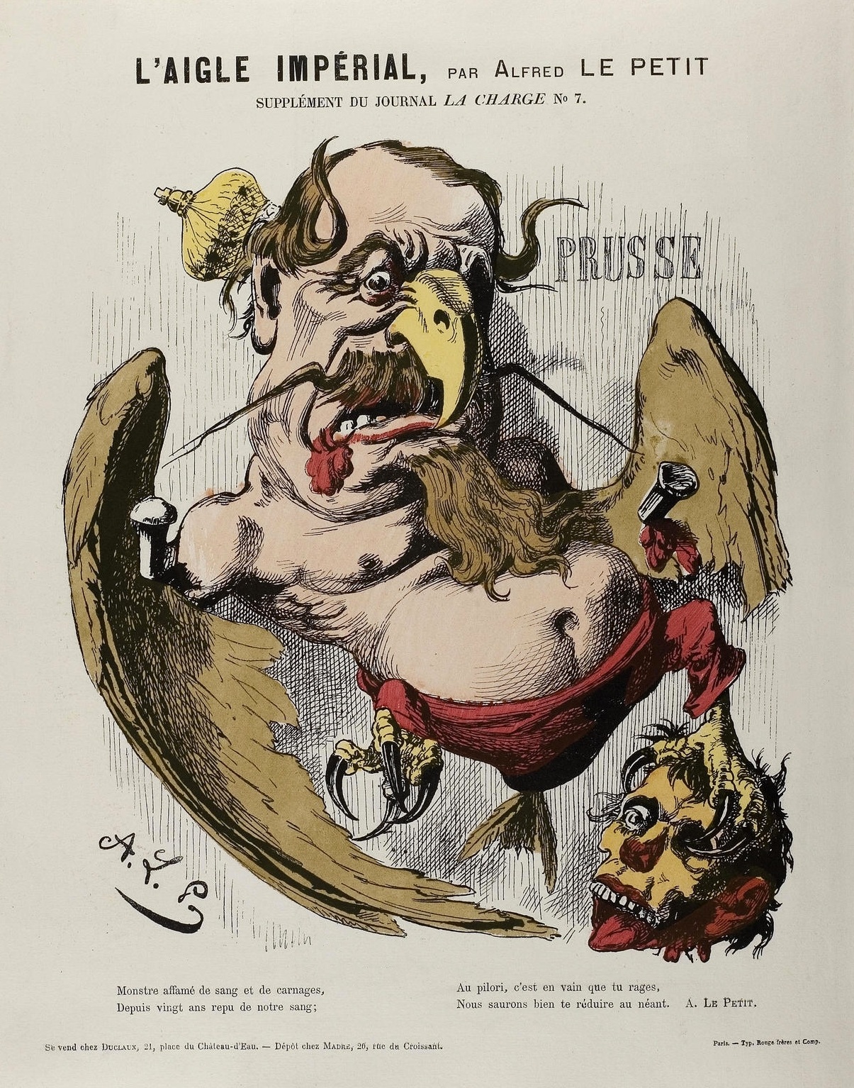 A águia imperial, retrata Napoleâo III. Do caricaturista Alfred Le Petit, ilustração publicada em sua revista, “La Charge”, que ele fundou em 1870.