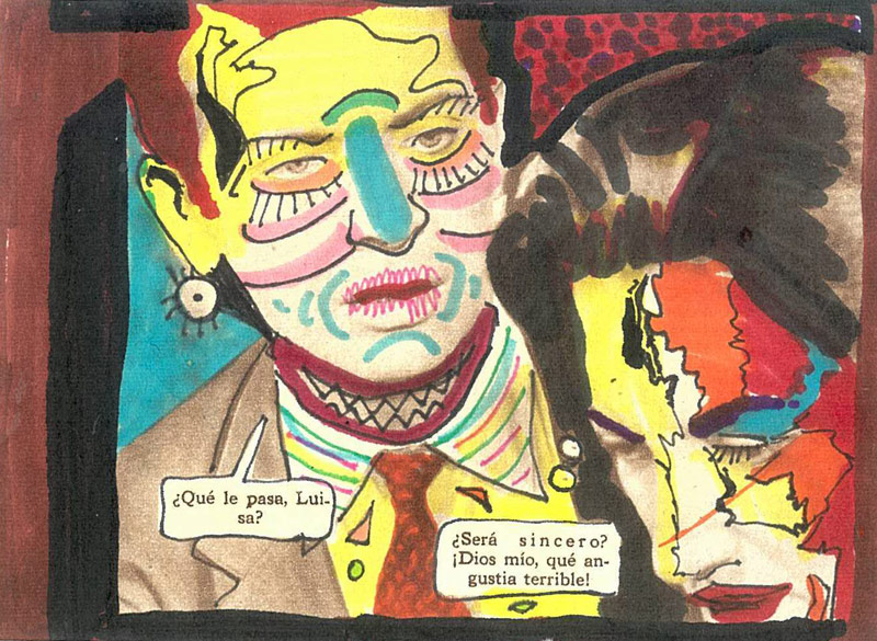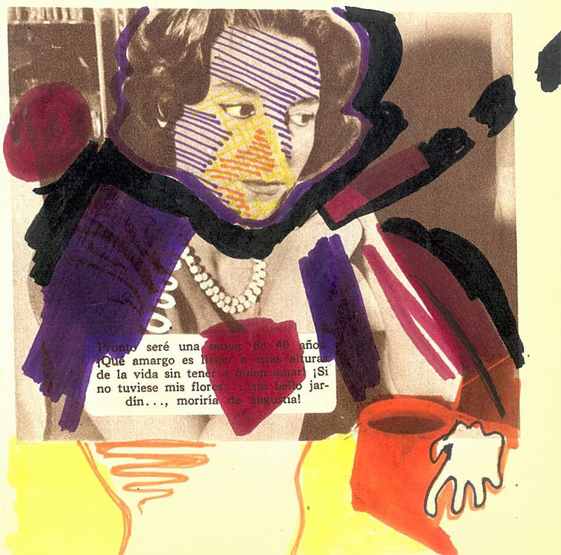 *Diogo Brozoski é gaúcho que mora no Rio há mais de 20 anos. É publicitário, artista e proprietário de um blog seminovo. Aqui ele explica este trabalho: “A fotonovela é uma publicação periódica em fomato de revista, muito lida entre as décadas de 50 e 70 em vários países da América do Sul, inclusive o Brasil. Exagerada, romântica e sonhadora, ela conta histórias de relacionamentos cheios de amor, ódio, intrigas e paixão, produzindo enredos com anseios atemporais. E agora, em 2012, eu interfiro com o meu grafismo de rabiscos e preenchimento de cor estabelecendo uma tensão gráfica que dá um novo significado à linguagem visual de um produto que flutua entre vários meios: literatura, telenovela e HQ. “.