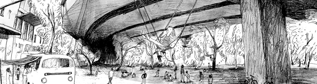 E a beleza da cidade aparece nos parques aquáticos subterrâneos que surgem numa Paulista imaginária. Num minhocão cheio de vida porto todos os lados. O Parque Augusta tornado real. Jardins e praças em toda a parte