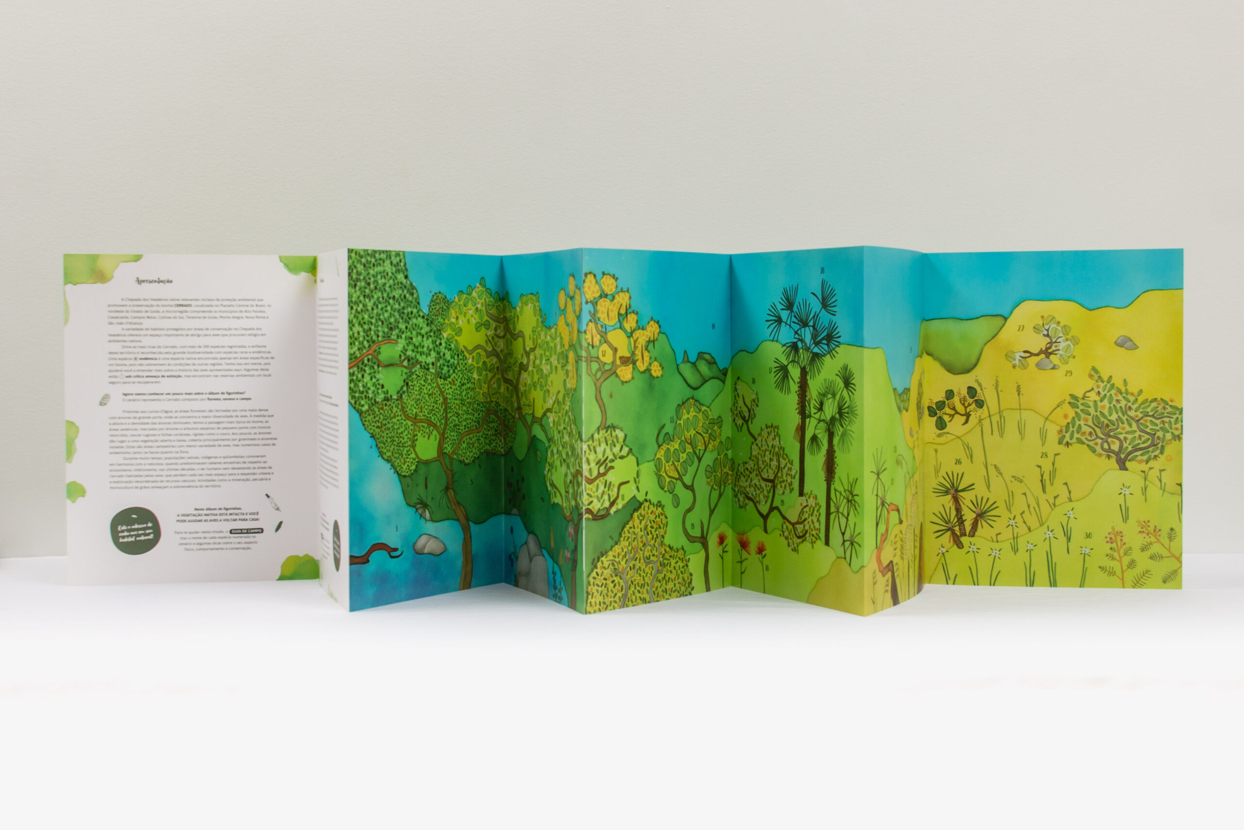 Registrar e exaltar a diversidade e importância do cerrado se faz urgente nesses tempos de devastação e uma publicação voltada, também, às crianças chega em muito boa hora. Dá um pequeno aperto no coração ler esse chamado para completar o pôster, mas é o que este momento pede: “neste álbum de figurinhas, a vegetação está intacta e você pode ajudar as aves a voltar para casa!”