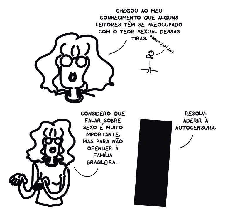Mas quem é esta sexóloga “taradóloga”? Ela fala sobre sexo, proteção, responsabilidade emocional com um tom escrachado, um tanto sem paciência, porque haja tanta ignorância e falta de cuidado nesse mundo. São cenas de consultório, bate-papo com amigas ou parceires sexuais carregados de crítica política ao que fazemos coletivamente na nossa vida privada. E foi esta abordagem que causou desconforto aos leitores do jornalão e acabou causando seu desligamento da publicação. Mas, aqui, exaltamos a importância da discussão desses temas todos, pois o caminho para uma sexualidade saudável parece cada vez mais complicado nessa sociedade.