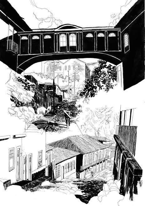 A história me interessou porque sou praticante de esgrima (tá, estou numa pausa atualmente) e não conhecia essa modalidade. No quadrinho, estudantes de medicina de Ouro Preto trazem a prática ilegal do Mensur para suas repúblicas e isso transforma completamente a vida de Gringo, o protagonista. É um livro denso que coloca a violência como pano de fundo no retrato de uma sociedade em que as pessoas não cuidam das outras pessoas, é cada um por si. É um retrato masculino do mundo (ou do mundo masculino?), que preza a honra acima de todas as coisas. O protagonista e os personagens com quem interage são na sua maioria homens, mas tem mulheres também e como elas são retratadas foi uma experiência bem interessante de ver.