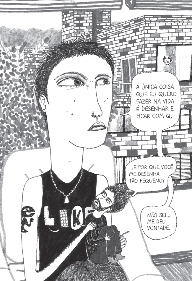 Esse é um quadrinho sobre um relacionamento. Em QP, Powerpaola reúne várias histórias que aconteceram durante seu relacionamento com Q., que foi de 2006 a 2012. Tem sido cada vez mais raro ver gente falando de relacionamentos passados de maneira tão serena quanto vi nesse livro. Este é um livro sobre seis anos de vida em comum e mudanças para várias cidades do mundo, mas não é um livro sobre relacionamentos, não vemos DRs ou questionamentos sobre as dificuldades de se estar com alguém. São registros do dia a dia de duas pessoas que dividiram suas vidas por mais de meia década, sobre as crises pessoais da autora com sua arte, sobre o tédio diário, sobre a vida em cada uma das cidades em que estiveram.