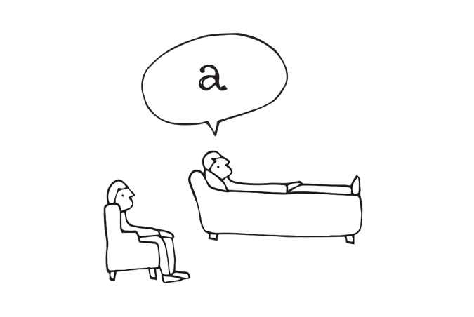 No cenário, temos uma poltrona, onde senta o psicanalista, e um divã, onde está sentado o analisado. O silêncio inicial desses dois personagens nos transporta para dentro daquela sala, onde começa a surgir o fluxo de pensamento por meio da dúvida (?), que vai ficando mais intensa (??????) e segue por balões-letra, vegetais, balão-nuvem que chove e cria oceanos cheios de balões-peixe de todos os tipos. E aí chegamos no entreato, em que a Monga surge se relacionando com um escafandrista, em páginas que vão adquirindo lentamente a cor da capa, essa mesma cor que vai desaparecendo até voltarmos ao branco do consultório e do fluxo de pensamento que segue até sua conclusão. Uma experiência deliciosa essa de ser conduzida pelo ritmo de imagens cheias de significado, que podem não ser o mesmo para cada um que vier a ler esse livro.
