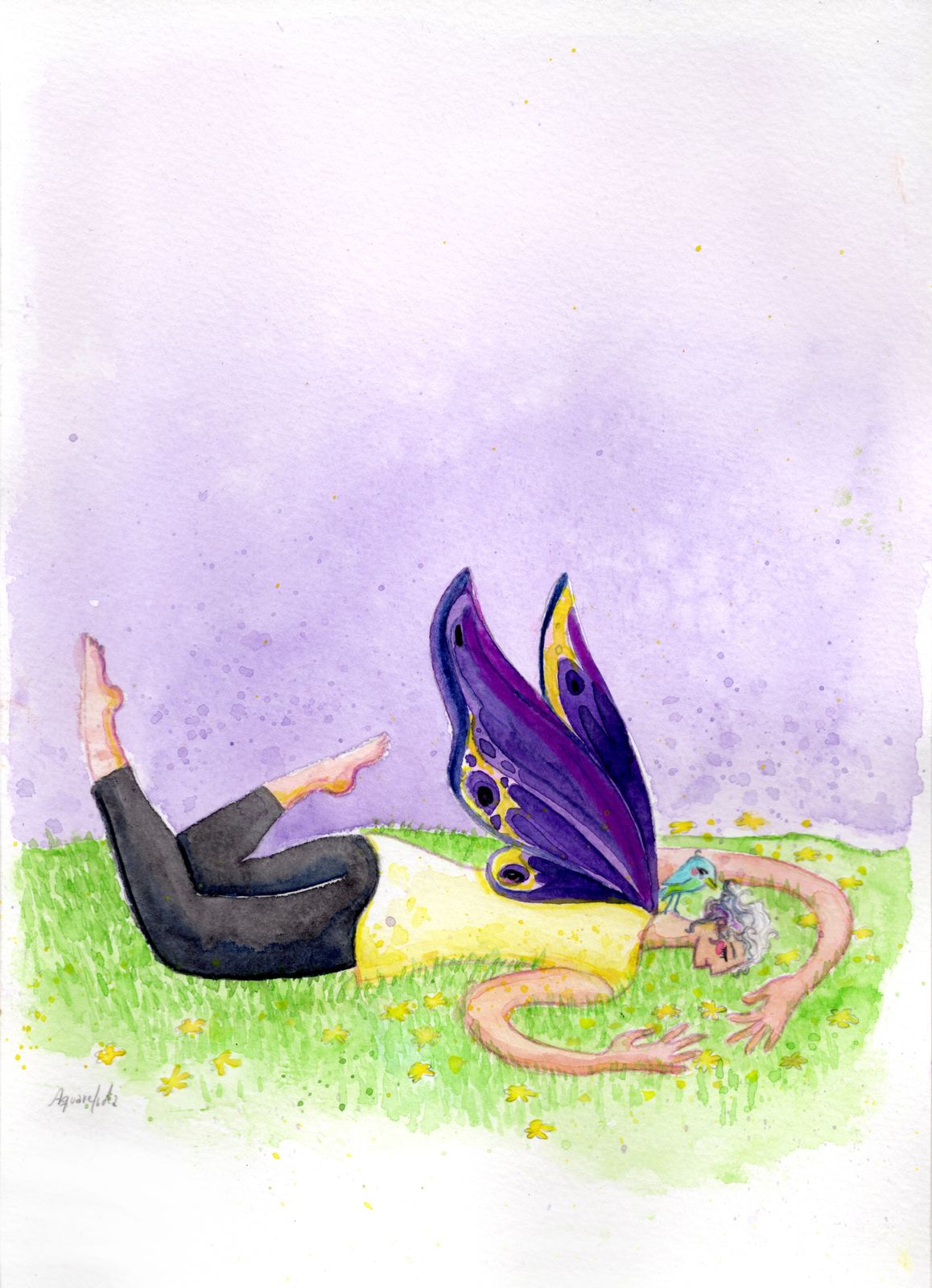 A surpresa que foi ler O Elo da Mariposa. Acompanhei um pouco do processo de sua feitura, mas não sei exatamente o que esperava, para além da ilustração linda que a Luda Aquareluda fez de mim para representar uma pessoa não-binária. A suavidade com que o tema é tratado, quase como uma conversa íntima que começa explicando os termos comuns e que devem ser conhecidos quando falamos de transgeneridade. Suave, mas profundo, politicamente posicionado, num texto que, aos poucos, vai nos conectando com os personagens todos que nos são apresentados, que são como um portal para esta realidade, que é bonita, sim, de se encontrar consigo mesmo e entender que a norma não nos abarca.