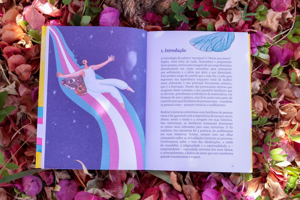 Histórias de pais, mães, avós, irmãos de pessoas trans. O livro é um acolhimento aos que amam e têm medo, aos que amam e querem ver felizes os que romperam essa barreira. A Luda diz que foi sua própria história que motivou a confecção do livro. O amor como fio condutor. E é gratificante que nossas vidas não são só dores. Este é um caminho difícil, evidente, num país que é o que mais mata pessoas trans no mundo, e não só mata, como expulsa de casa, joga na rua, no subemprego…